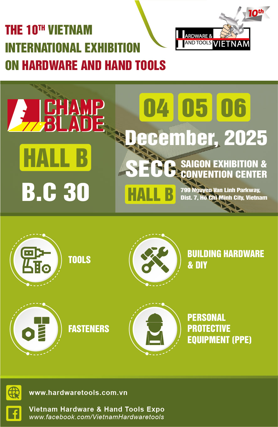 The 10th Vietnam Hardware & Hand Tools Expo 2025 (VHHE) will take place from December 4th to 6th, 2025 at Hall B, SECC, Ho Chi Minh City. Marking its 10-year journey, VHHE 2025 reaffirms its position as Vietnam’s leading specialized exhibition for the mechanical and supporting industries. The event continues to serve as a dynamic platform for business networking, domestic market expansion, global supply chain integration, and spreading the DIY culture to tool enthusiasts worldwide.